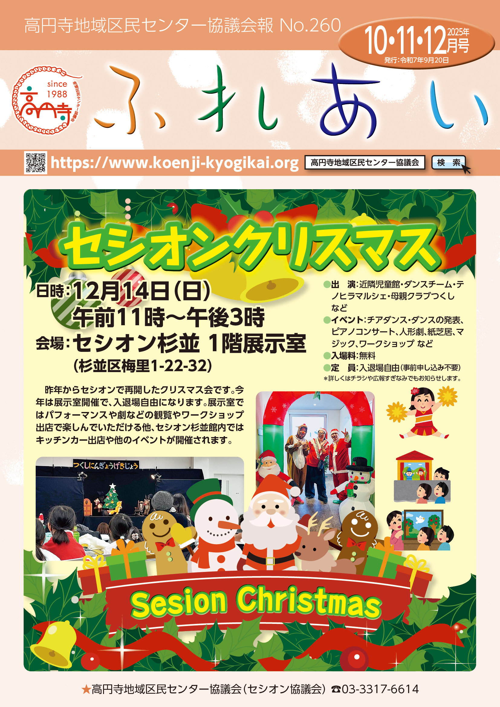 きた!きた!高円寺まつり2024,セシオンクリスマス会の開催案内があります。今年からセシオン杉並で親子参加のクリスマス会が始まります。募集案内がありますのでご覧ください。